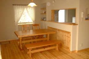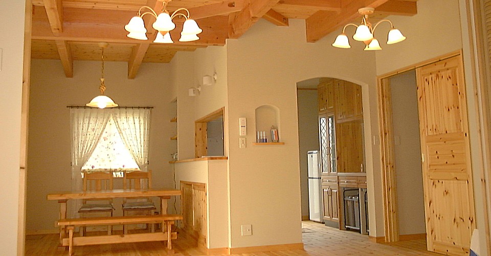 床や天井のパイン材が住む人のカラダを優しく守り、また、断熱材にもこだわっているため夏涼しく冬暖かい、