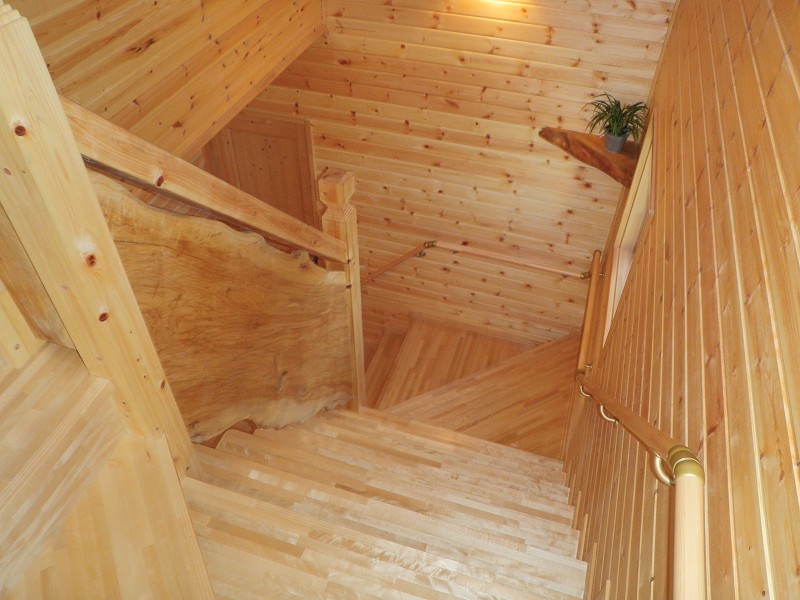 木造住宅の中でも強度・自由度が圧倒的に高い「KES構法」を採用し、外装だけでなく内装も自然素材に徹底的にこだわりました。玄関に一歩踏み出すと、そこはまるでログハウス。